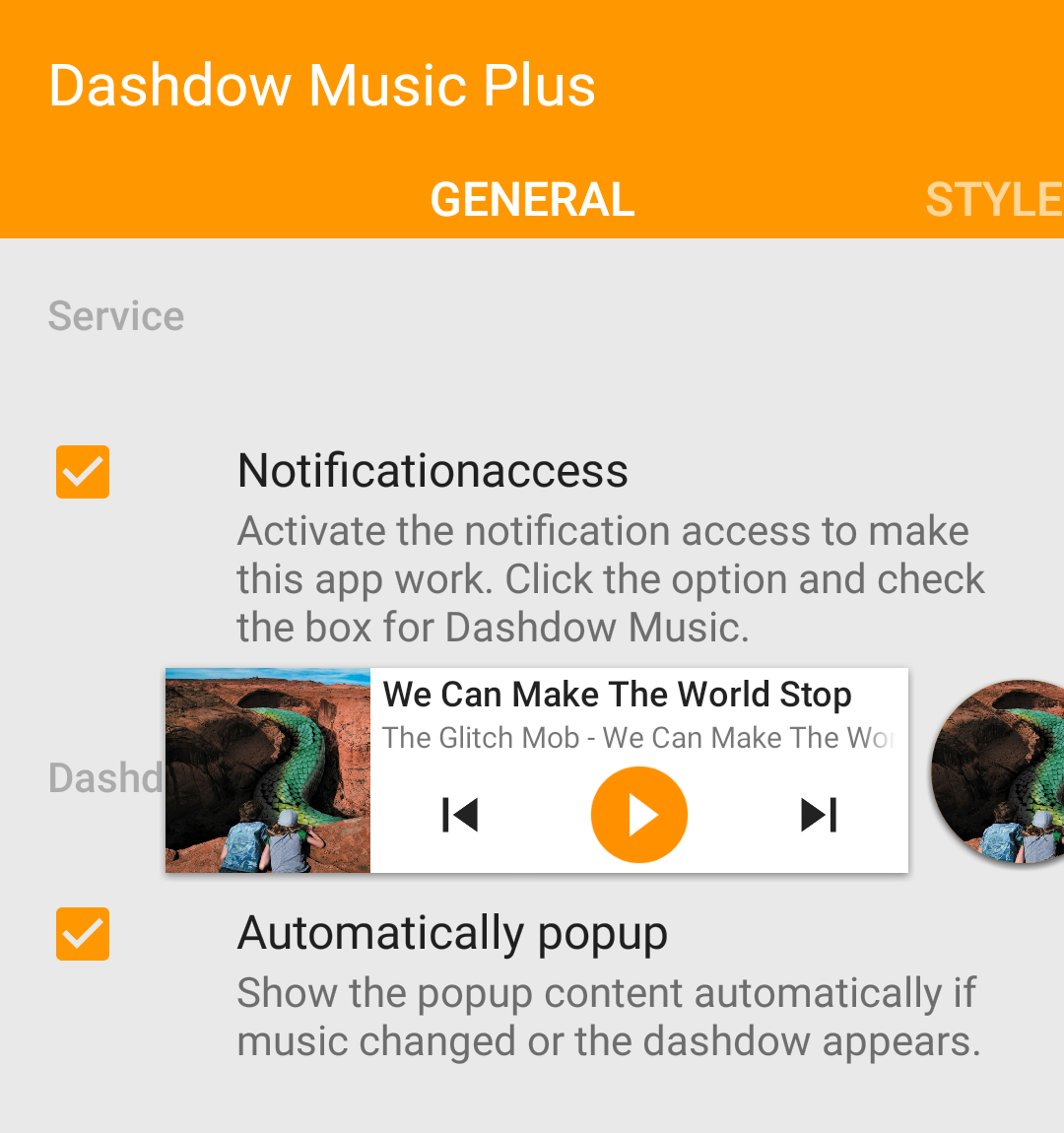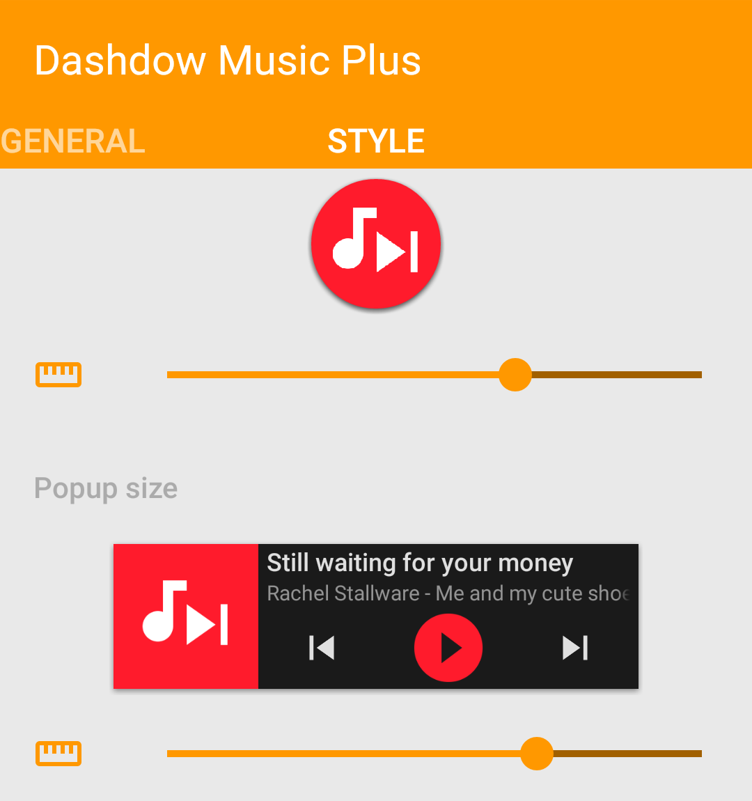 Control actions for the main music functions included in the popup and also every information about current track is shown.